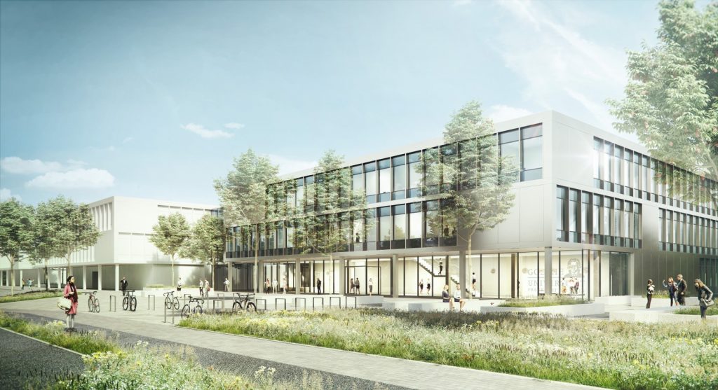 Der Campus Riedberg der Goethe Universität Frankfurt soll um einen neuen Forschungscluster erweitert werden. Dieser soll die Funktionen von Lehr- und Forschungsgebäude, einem Parkhaus und einer Technikzentrale enthalten.