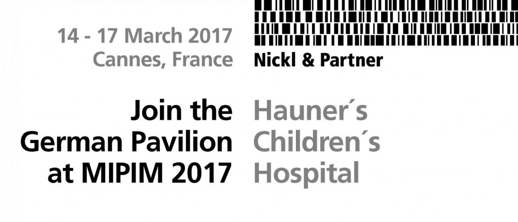 Le Marché international des professionnels de l’immobilier MIPIM 2017 aura lieu, cette année, du 14 au 17 mars 2017 au Palais des Festivals et des Congrès de Cannes. Nickl & Partner Architekten AG a le plaisir, cette année, encore, d’être présente au stand commun GERMAN PAVILION. Notre numéro de stand est le R.7.G38/19, dans le hall Riviera. Nous attendons votre visite !