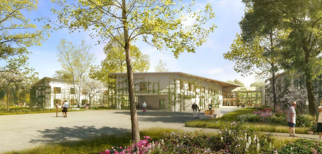 Le projet apporte une atmosphère confortable, sécurisante et un caractère hôtelier aux unités de soins. Les locaux sont facilement identifiables et aérés et l’orientation des cheminements des patients, visiteurs et du personnel soignant est facilité. Le caractère domestique, familier et pavillonnaire du projet est souligné par le traitement vivant et animé des façades et par ses toitures filant et s’intégrant tout naturellement dans le paysage.