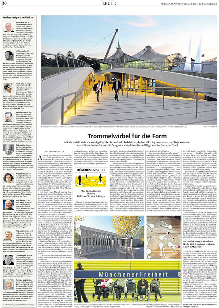 Neben neun weiteren Vertretern wird das Büro zu „Münchens Machern“ im Bereich Architektur und Design gezählt.